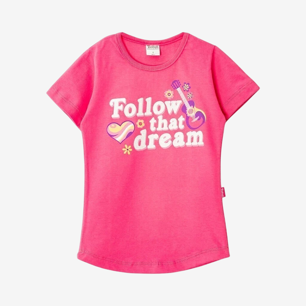 Ajuste Perfecto: Gracias a su corte bien pensado, la Remera Niña Follow se adapta a la figura de tu pequeña, permitiéndole moverse con libertad mientras mantiene un look estiloso.